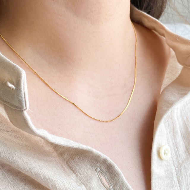 きれいめな雰囲気で、女性らしく身に付けていただきやすい細めのネックレス。 コーディネートを引き立てる上品な存在感で、幅広いシーンで活用することが出来ます。 アクセントにイチオシなゴールド、お肌がワントーンUPして見えるシルバーの2色をご用意しております。 素材:silver925 長さ:40㎝+アジャスター5㎝
