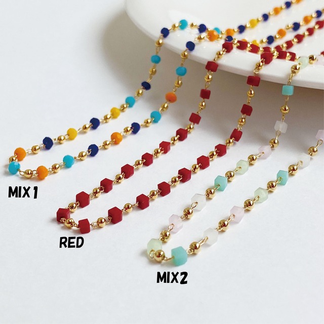 コーディネートのアクセントとしてもお使いいただける大人可愛いビーズネックレス。 1つ1つのパーツがミニサイズなので主張し過ぎず、身に付けるだけでお顔周りが明るい印象に。エレガントなレッド、コントラストが楽しめるビタミン&寒色カラー、トレンドのくすみカラーの3種類ご用意しております。 素材:Stainless steel(金具類) 長さ:長さ:41.5㎝+アジャスター4.5㎝ ※こちらはアジャスターのエンドチャームがない商品になります。 ■Stainless steelとは サージカルステンレス・316Lとも記載され、医療用のメスなどにも使用されるほど腐食や酸化、熱に強いなど優れた特性を持つステンレスです。 耐食性がとても高いので、水分やアルコールなどで、金属成分が溶け出しにくく金属アレルギーになりにくい素材です。
