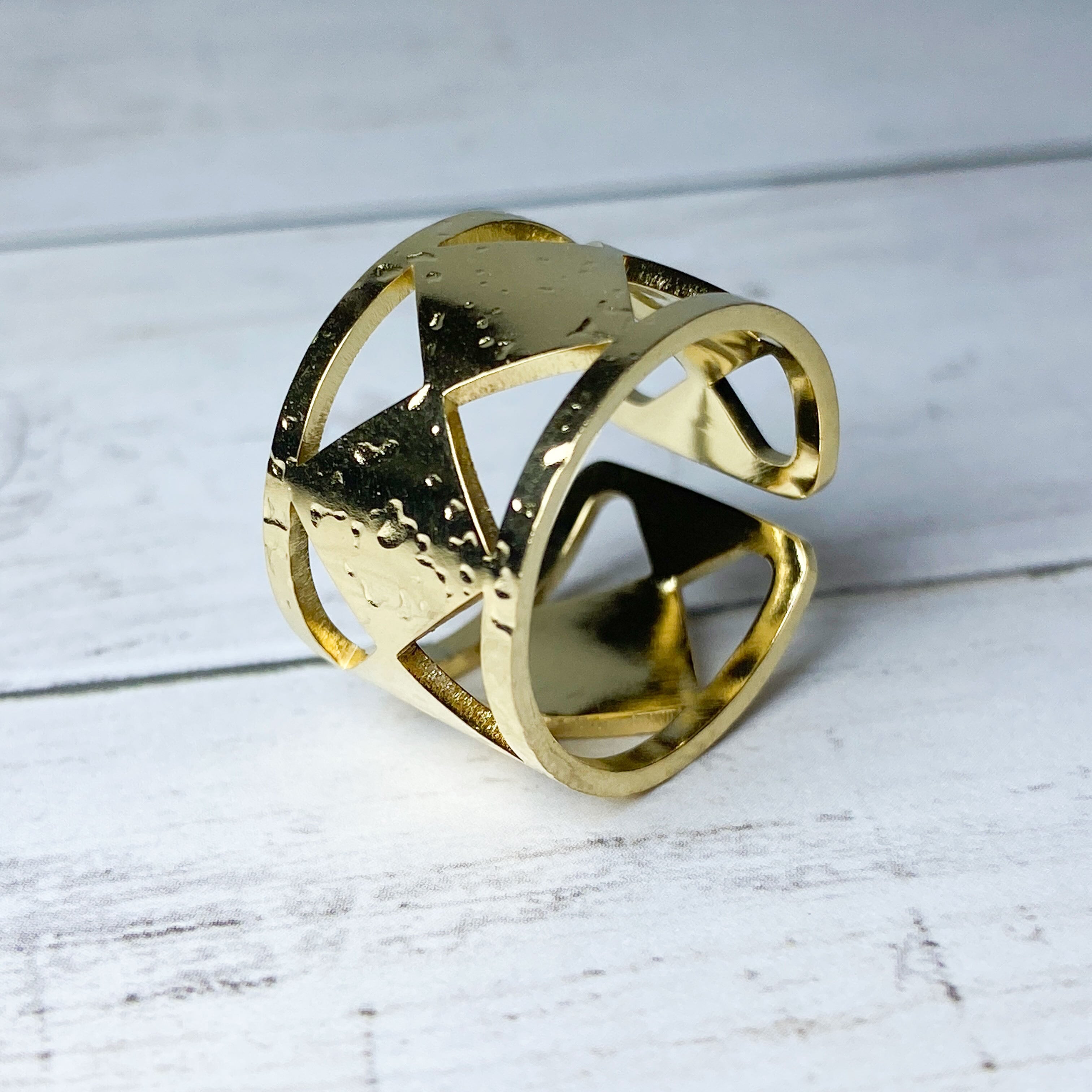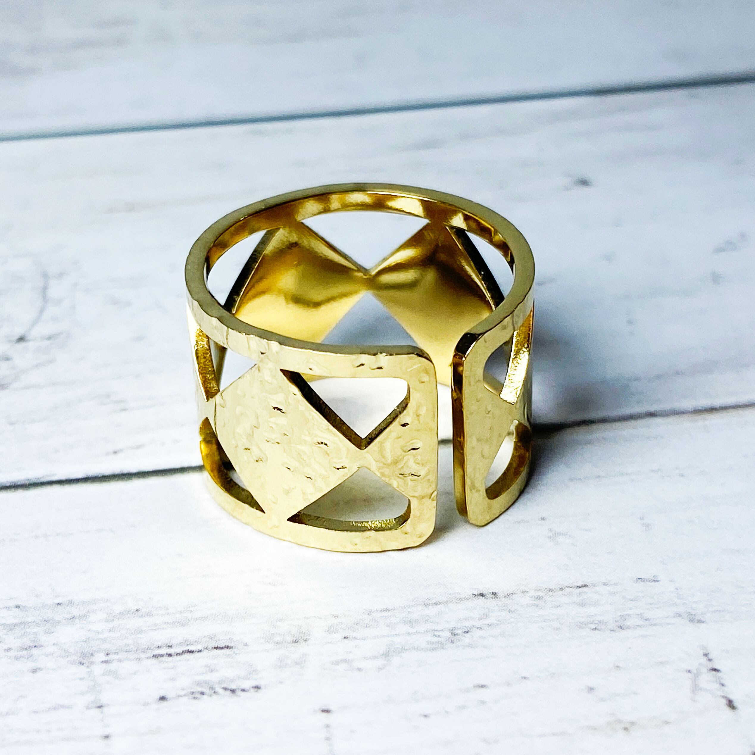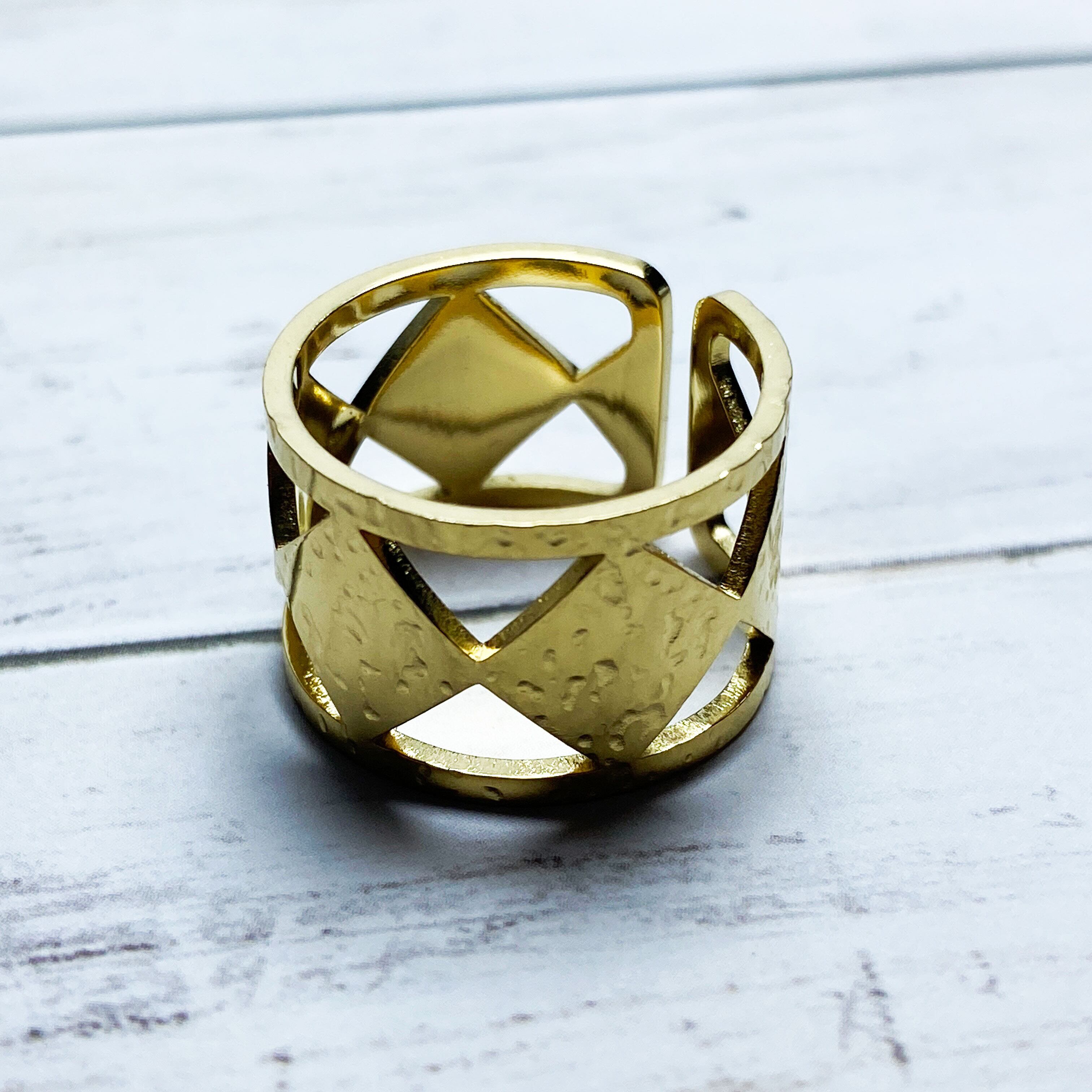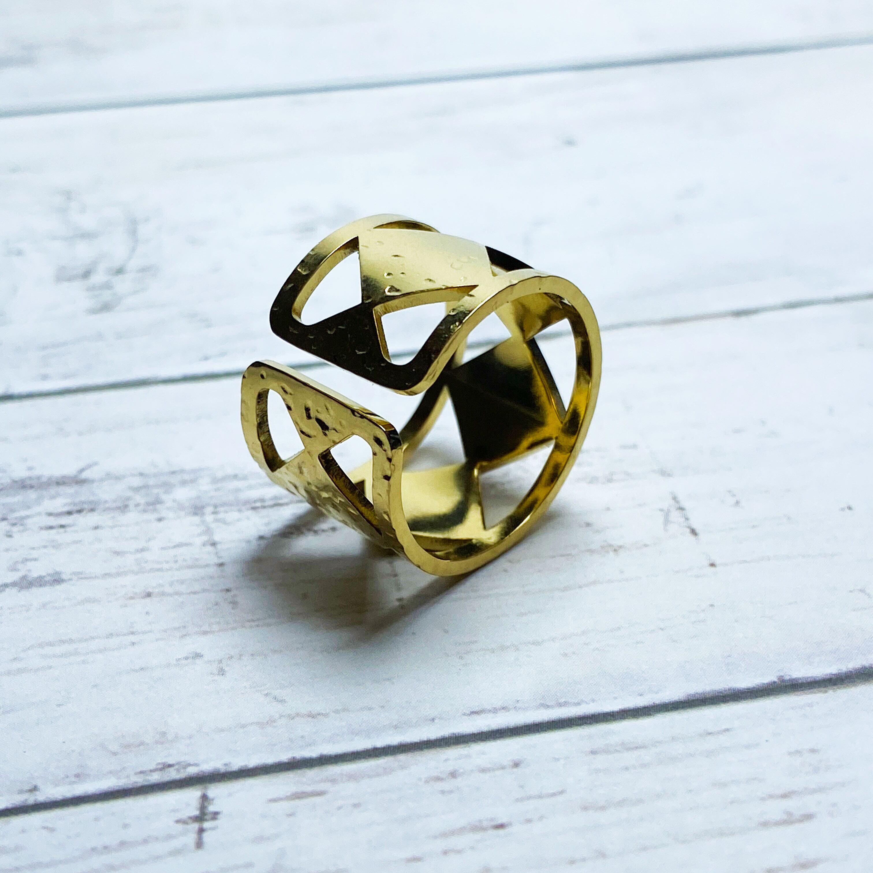 古くから魔除けのモチーフとして重宝されてきたダイヤ型をモチーフにしたリング。