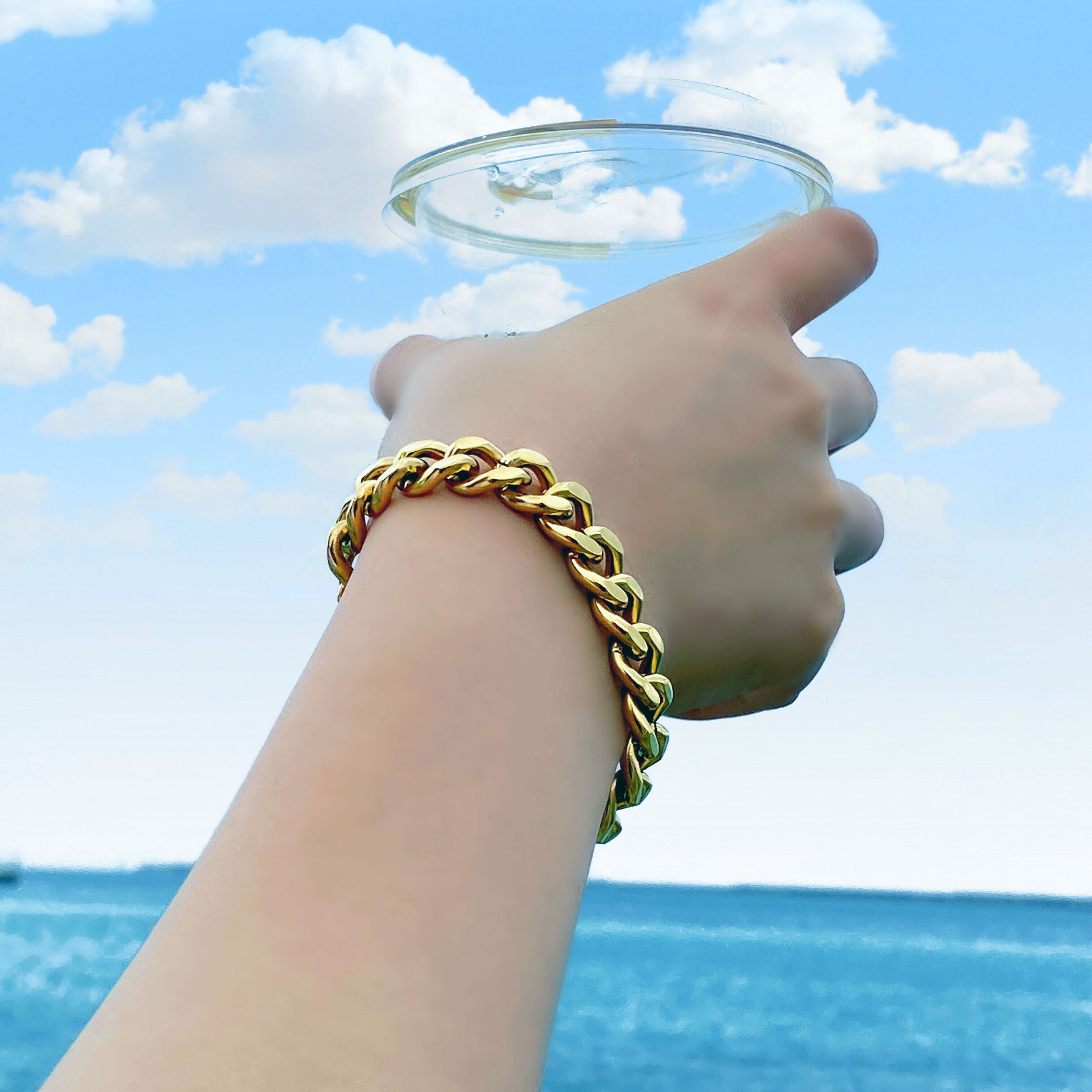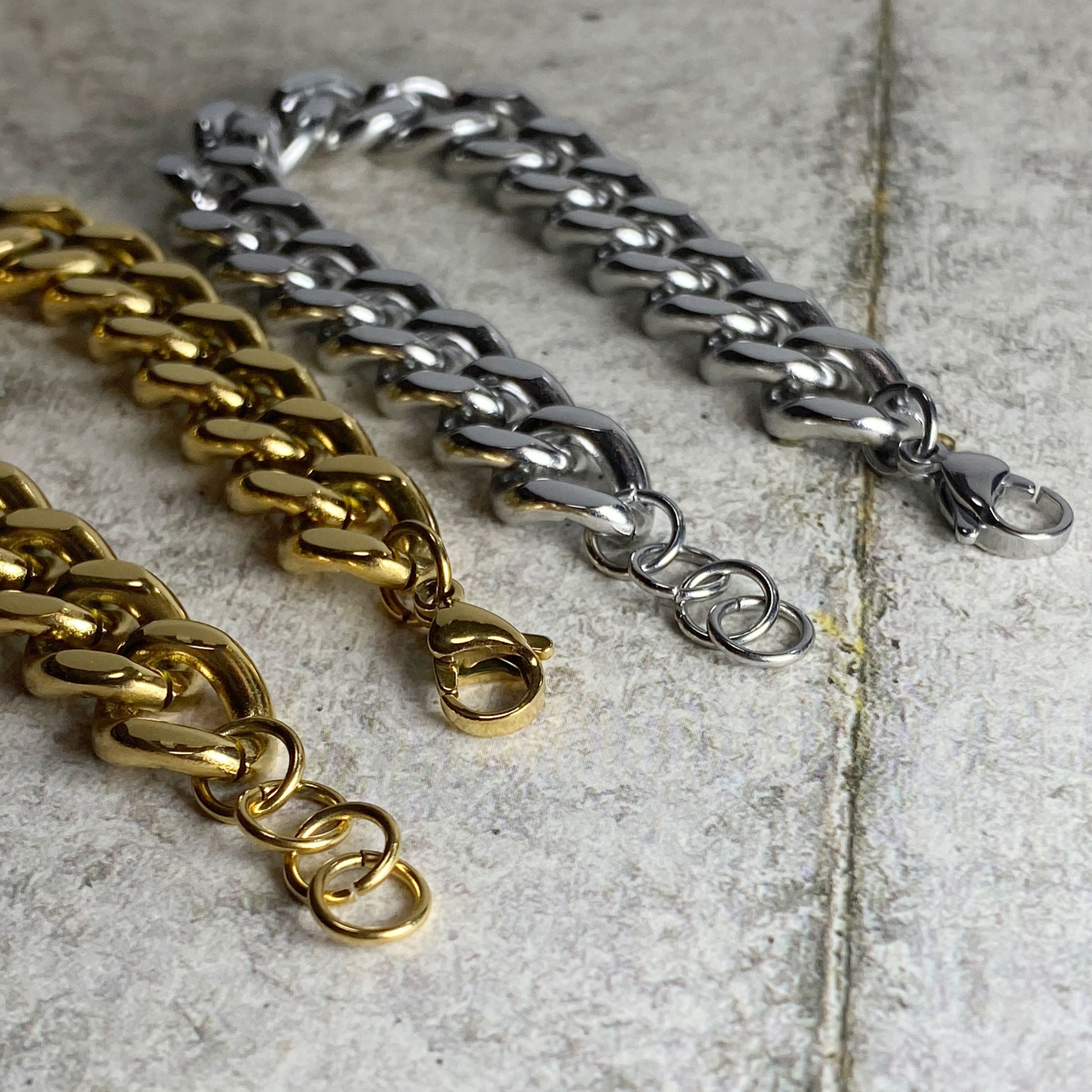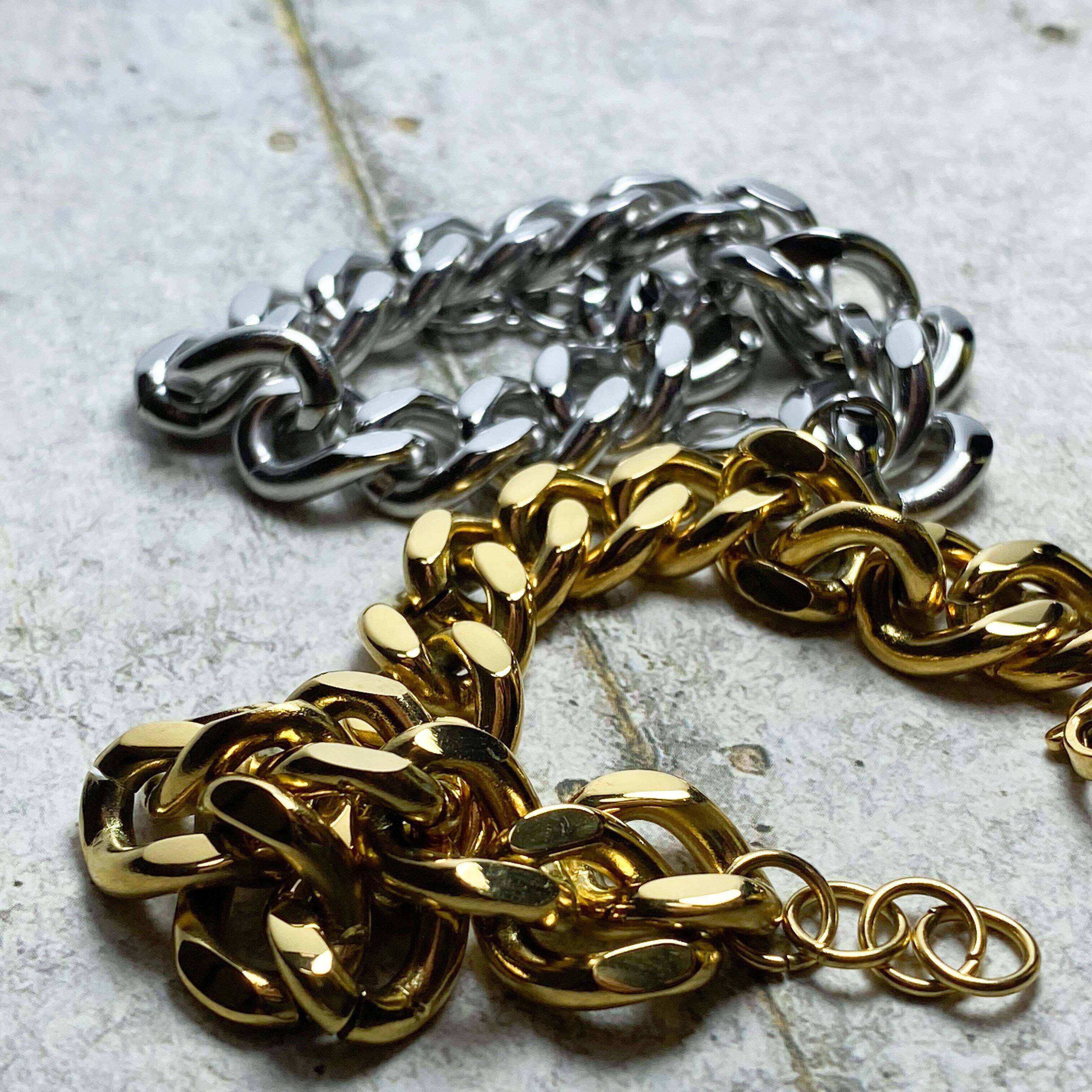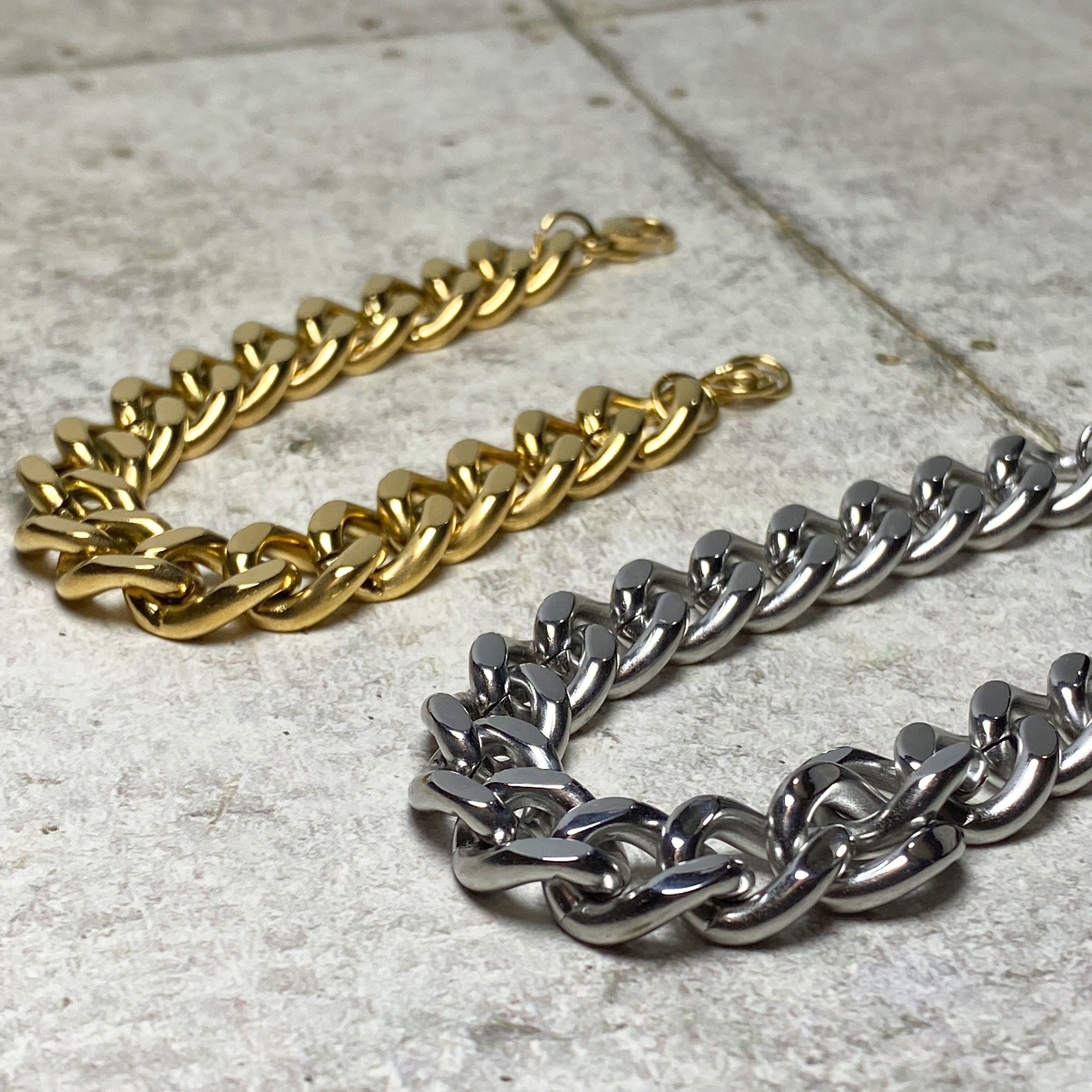 カジュアルやロック系のファッションに合う、太めのチェーンブレスレット。