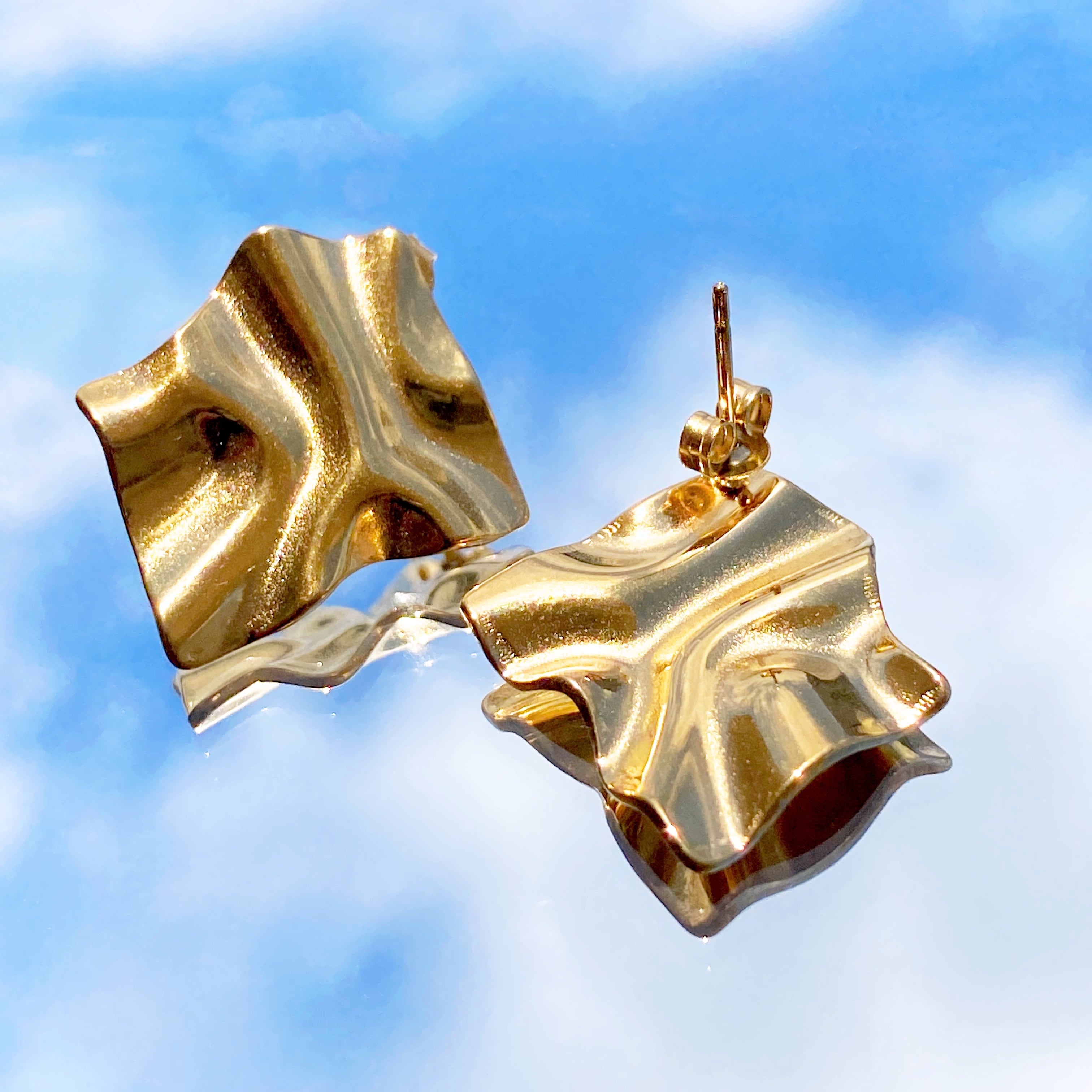 きちんと感の出るスクエア型に歪みを加えた都会的なピアス。