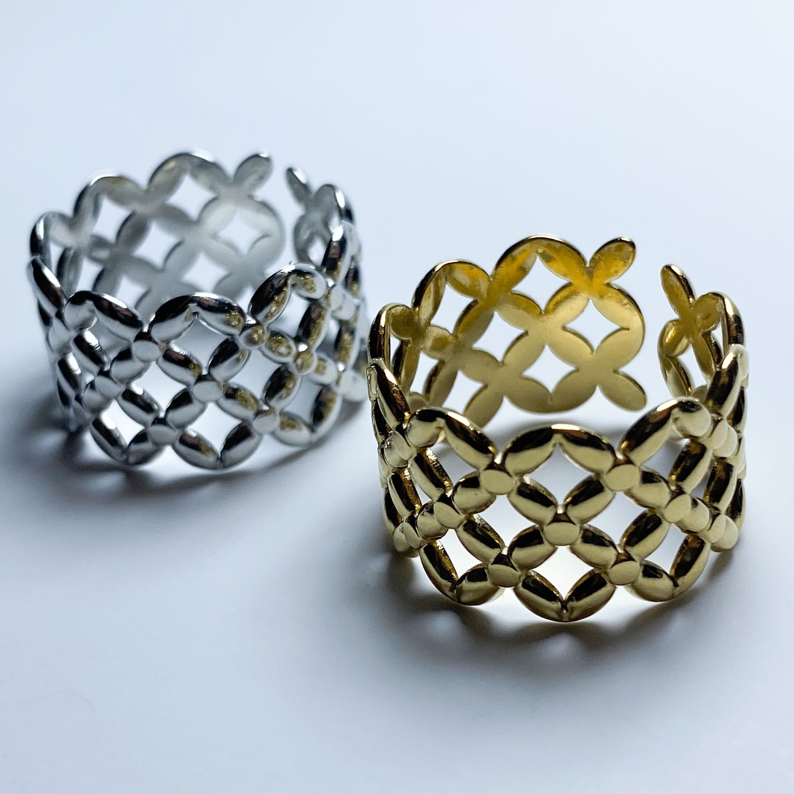 個性的なオシャレ感を出せるメッシュデザインのリング。