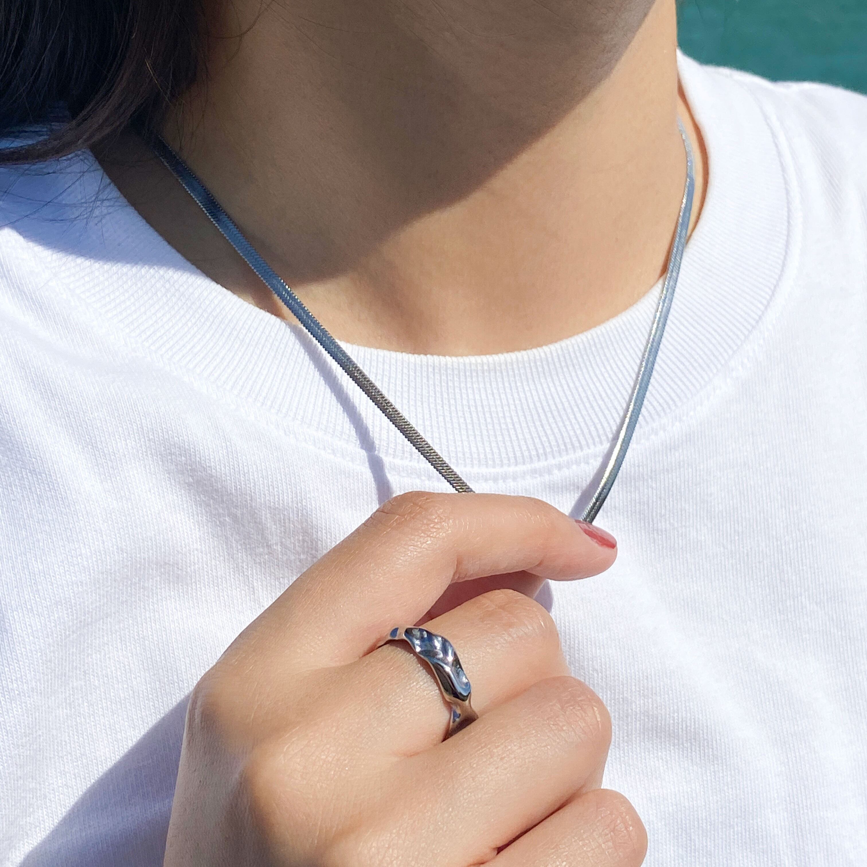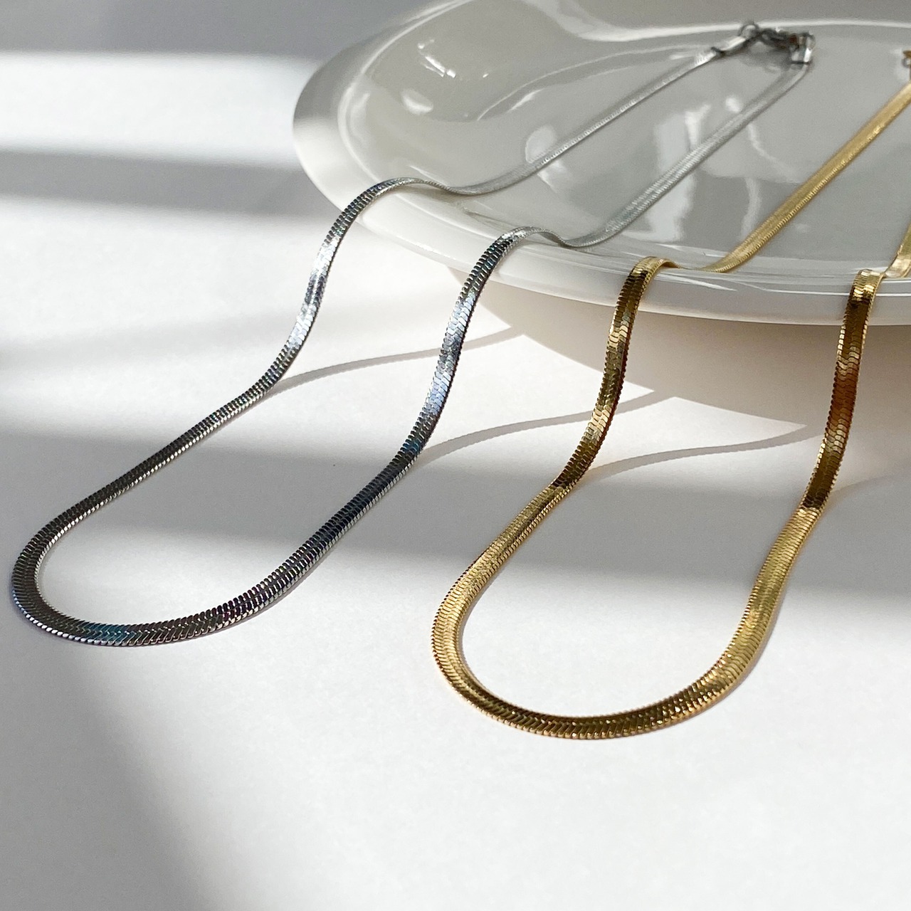 スネークチェーンならではの、しなやかな輝きが美しいチョーカーネックレス。