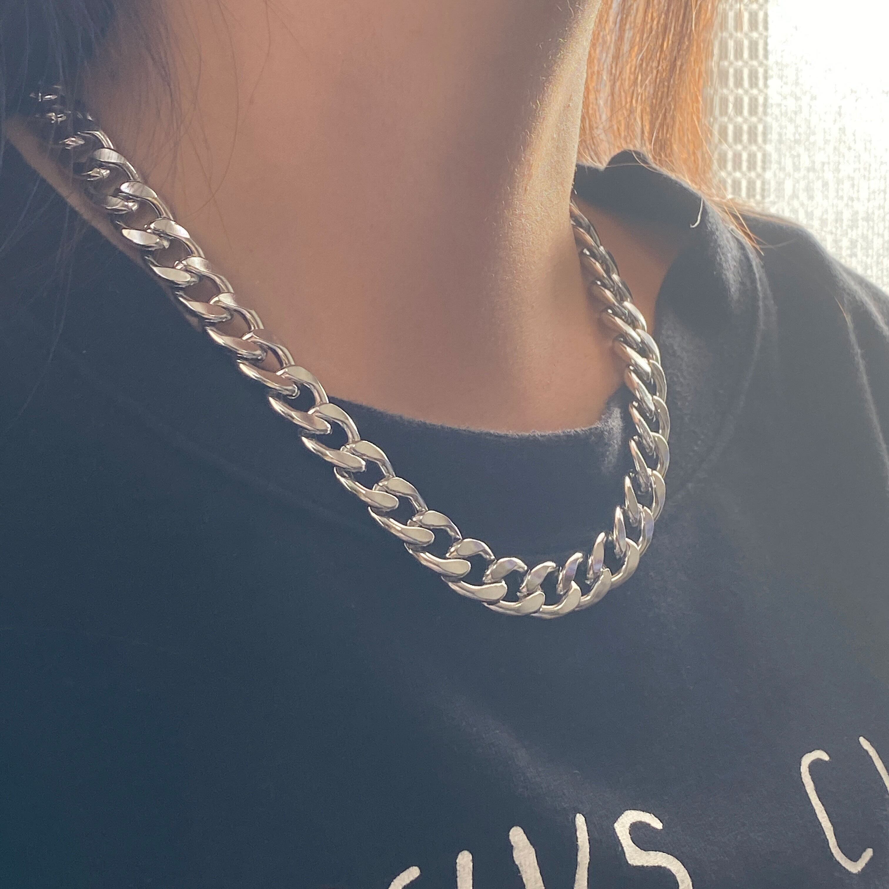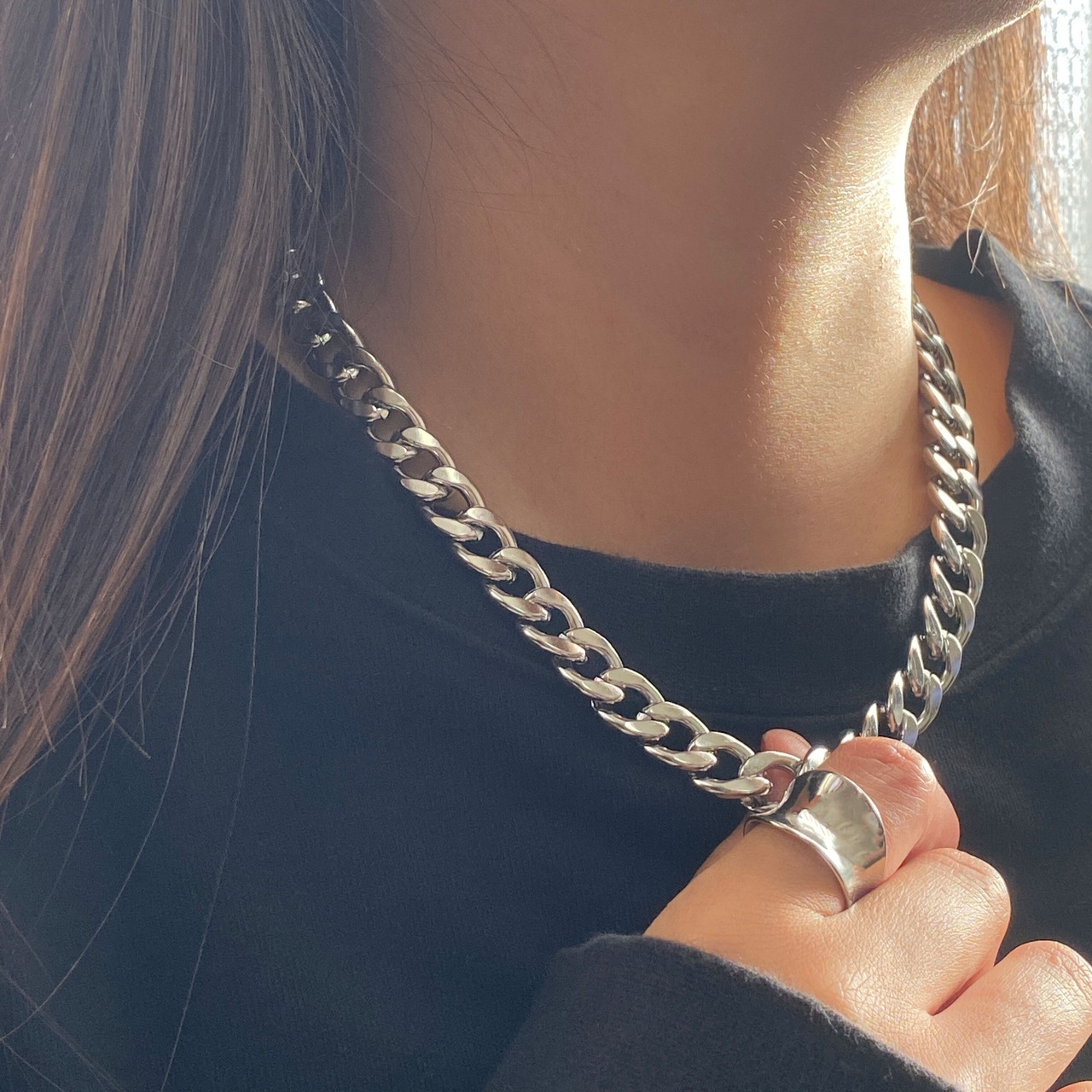ワイドなチェーンが連なったハンサムレディなネックレス。