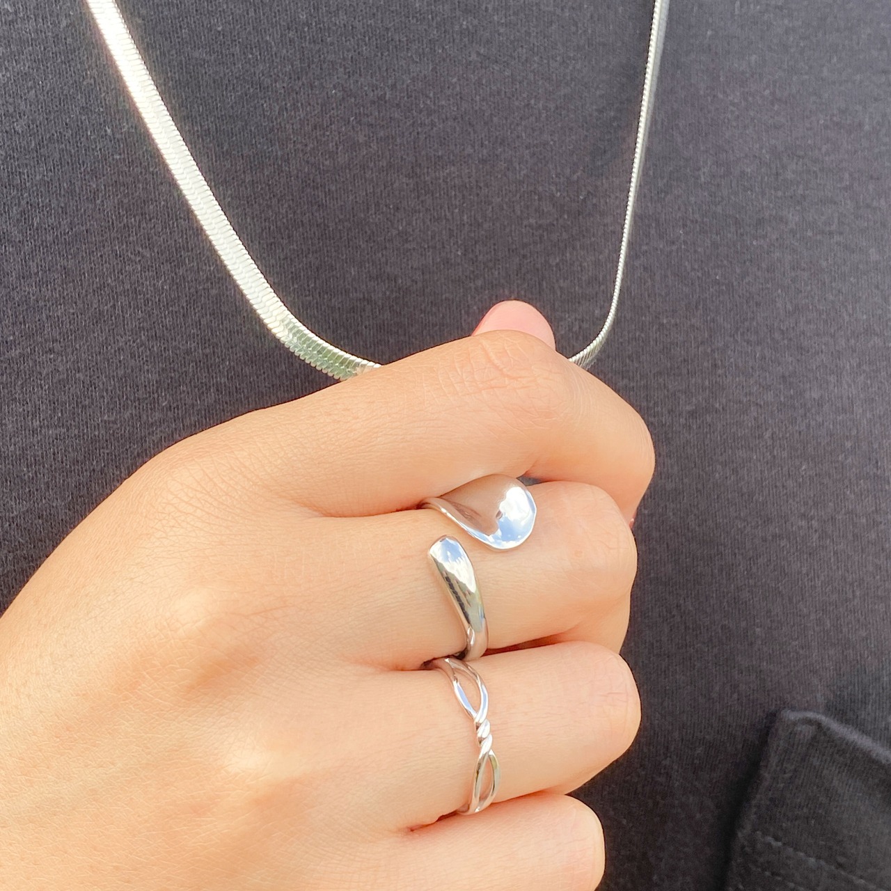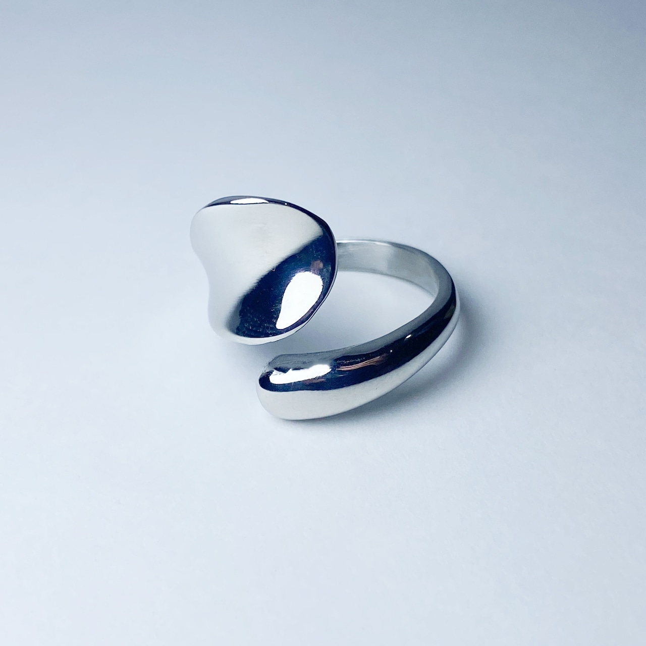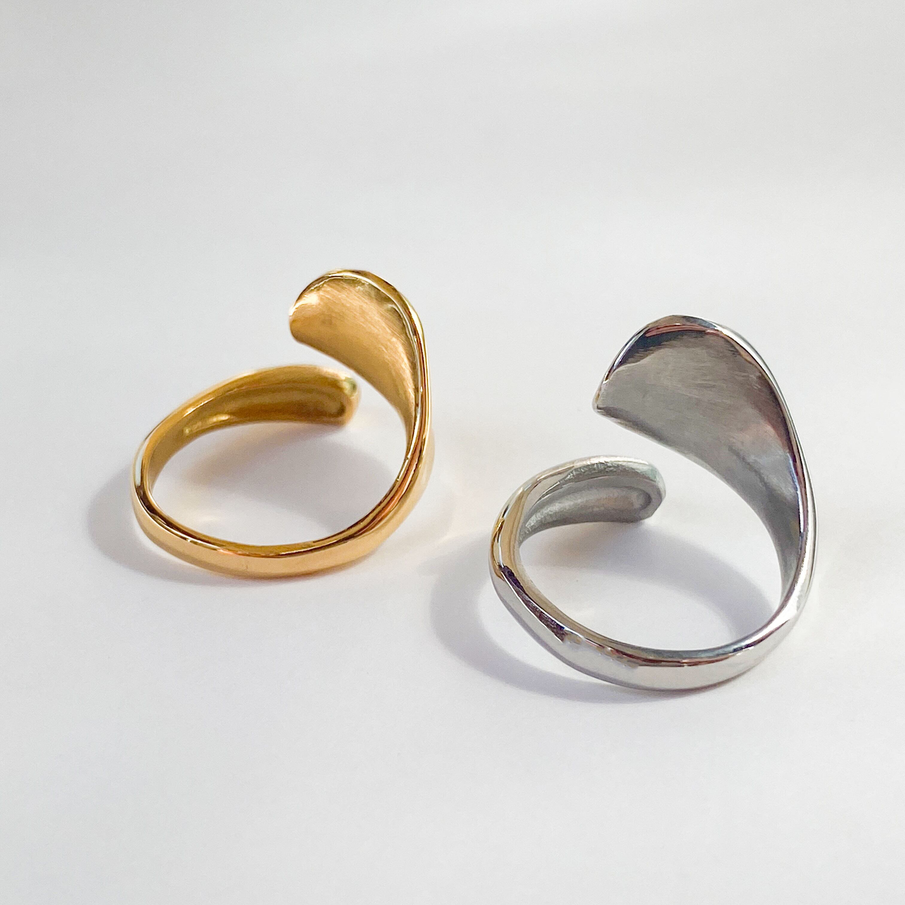 角度により違う表情に見せてくれるアシンメトリーデザインのリング。