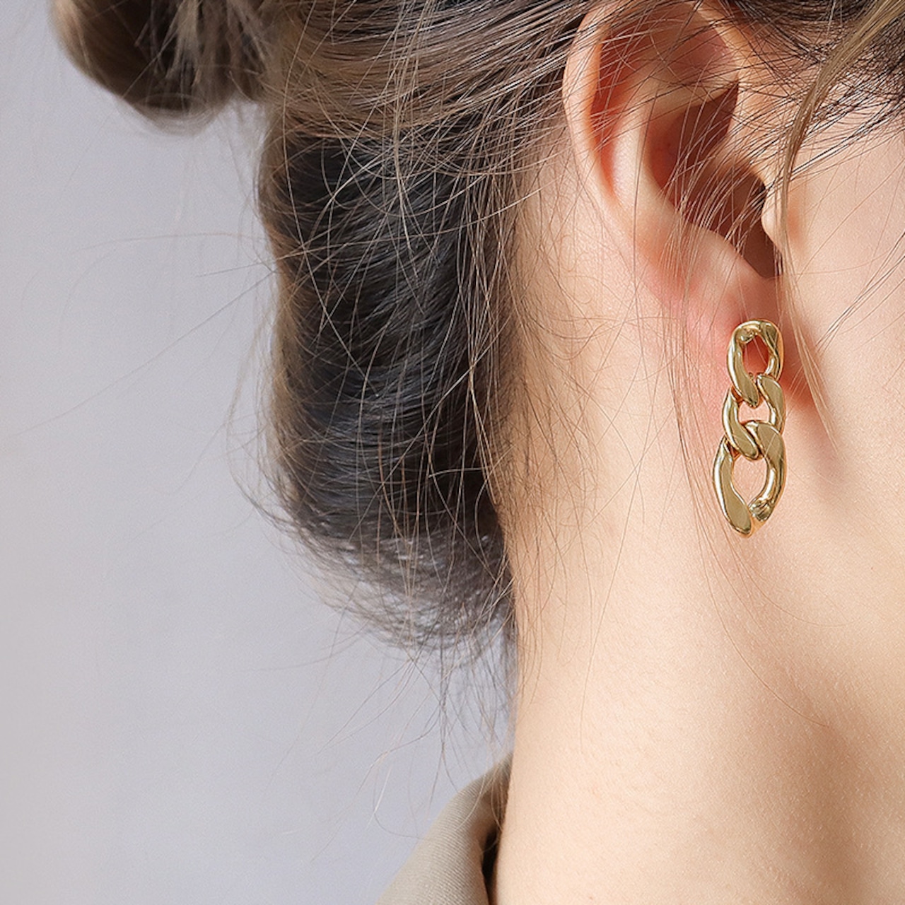 メタリック調の小さな輪っかが連なったチェーン型ピアス。