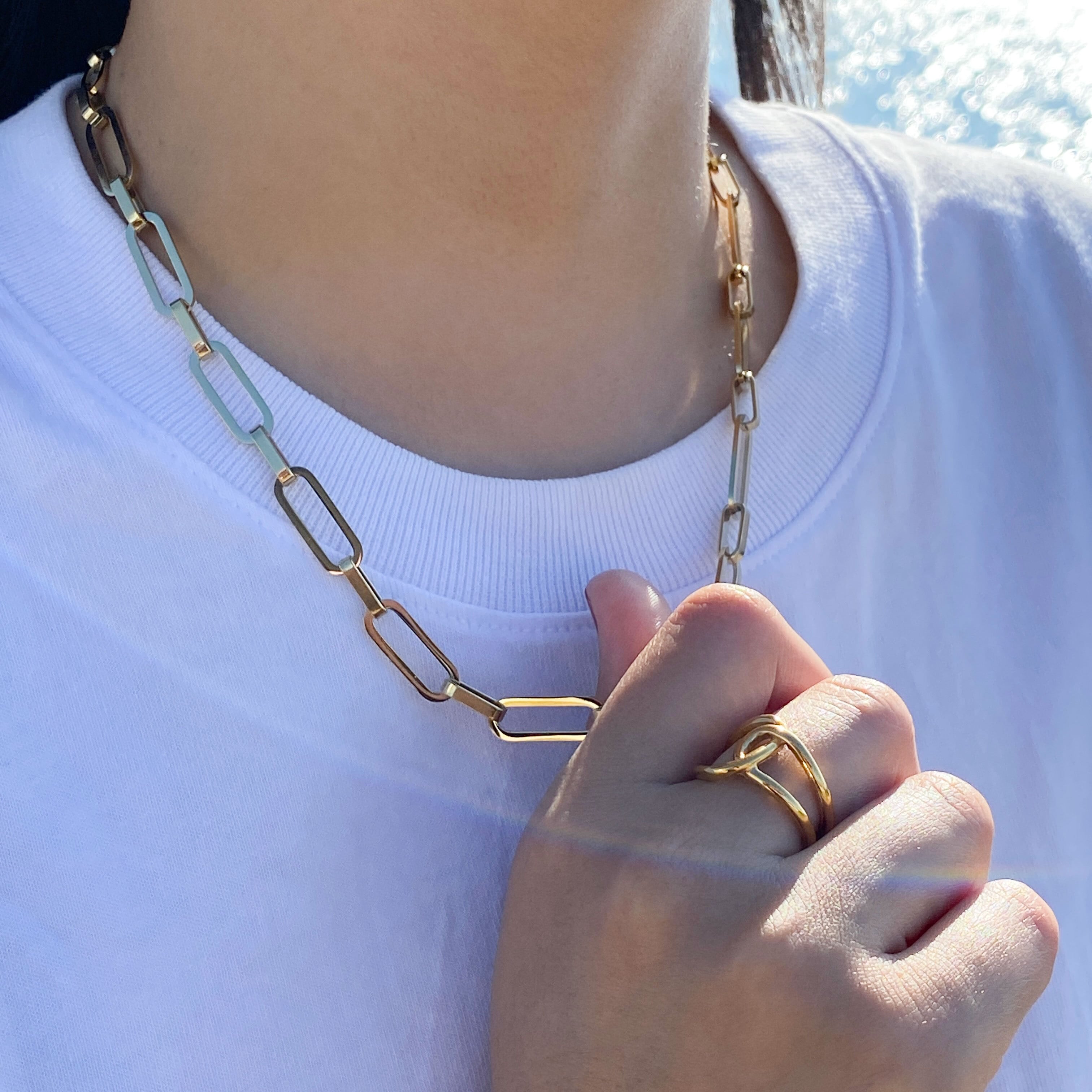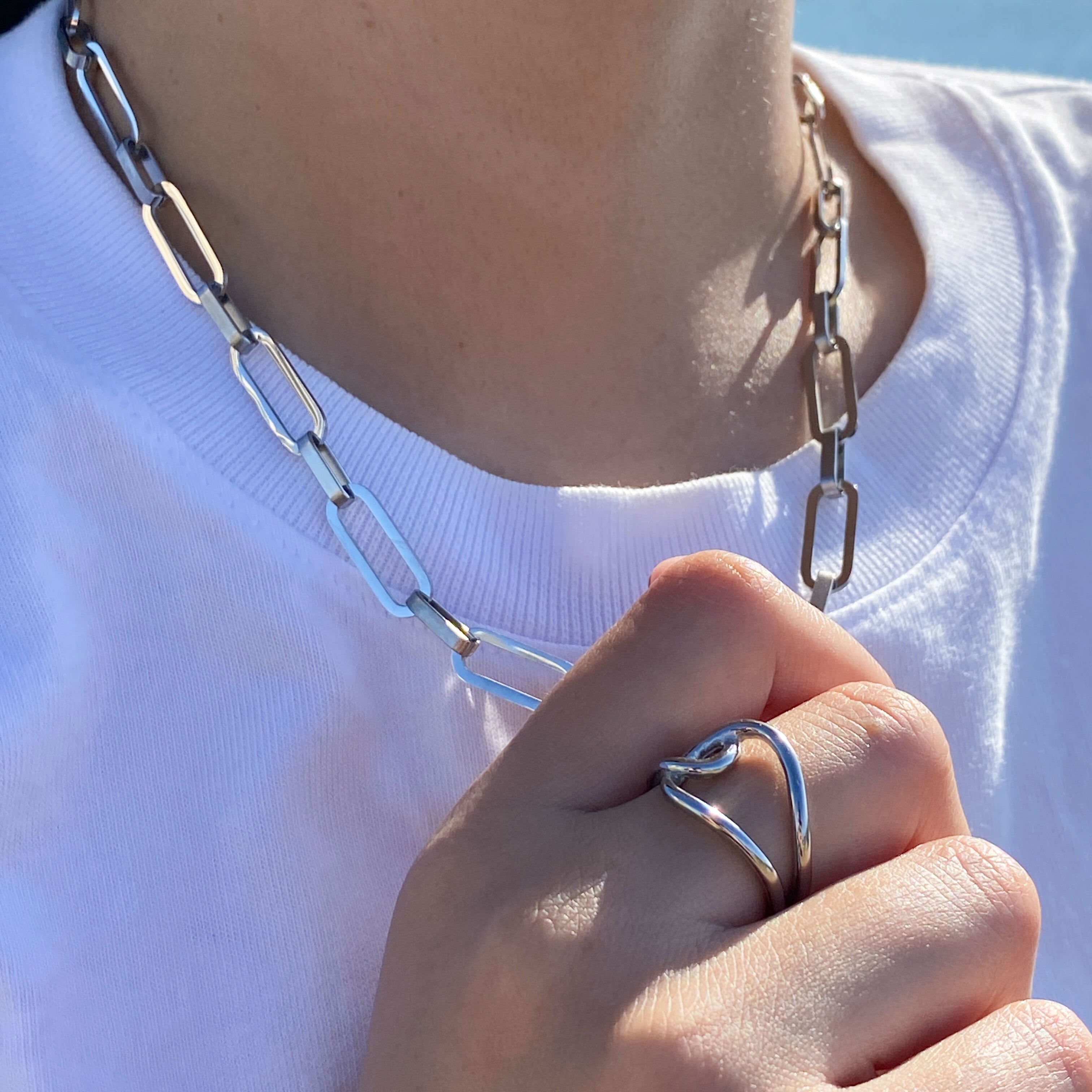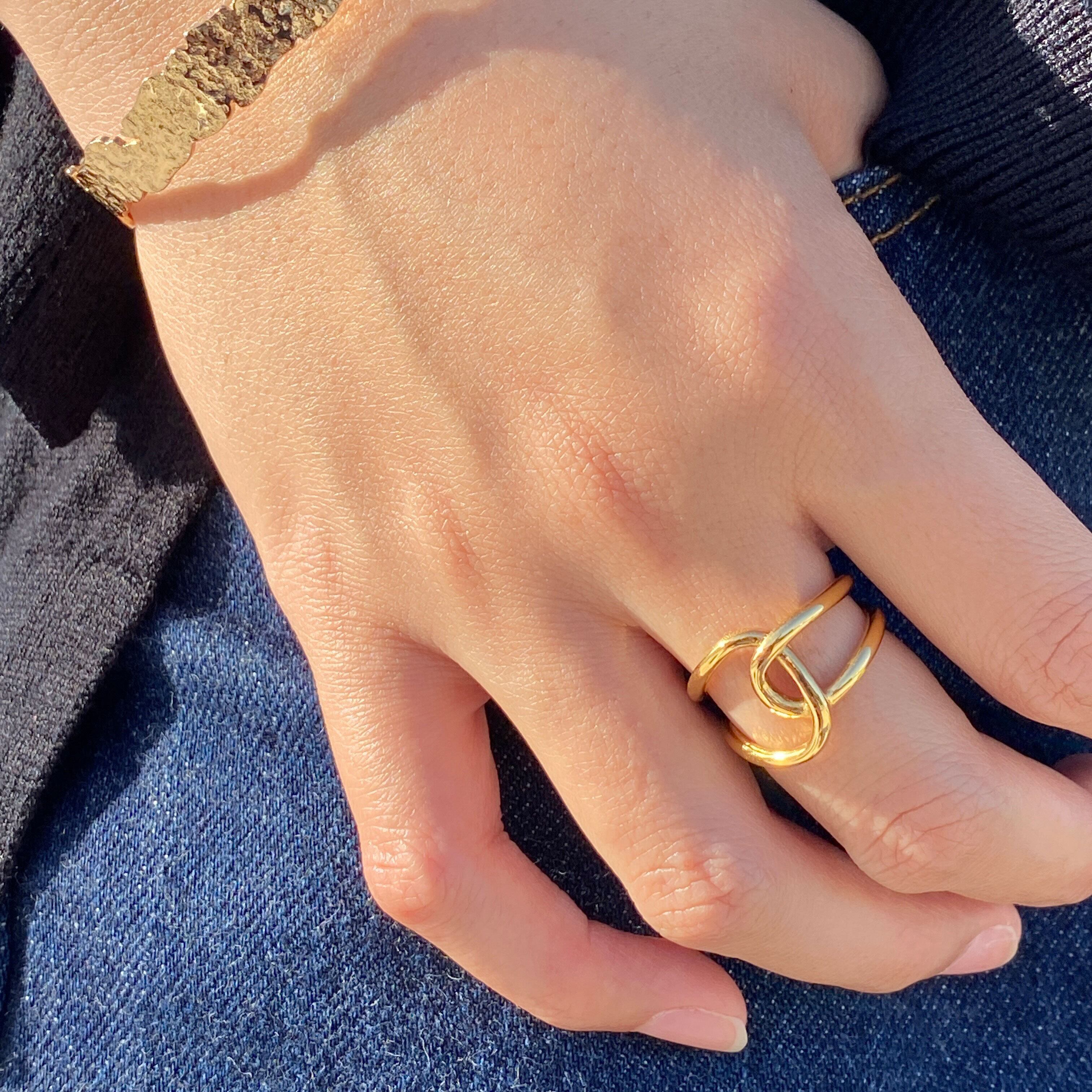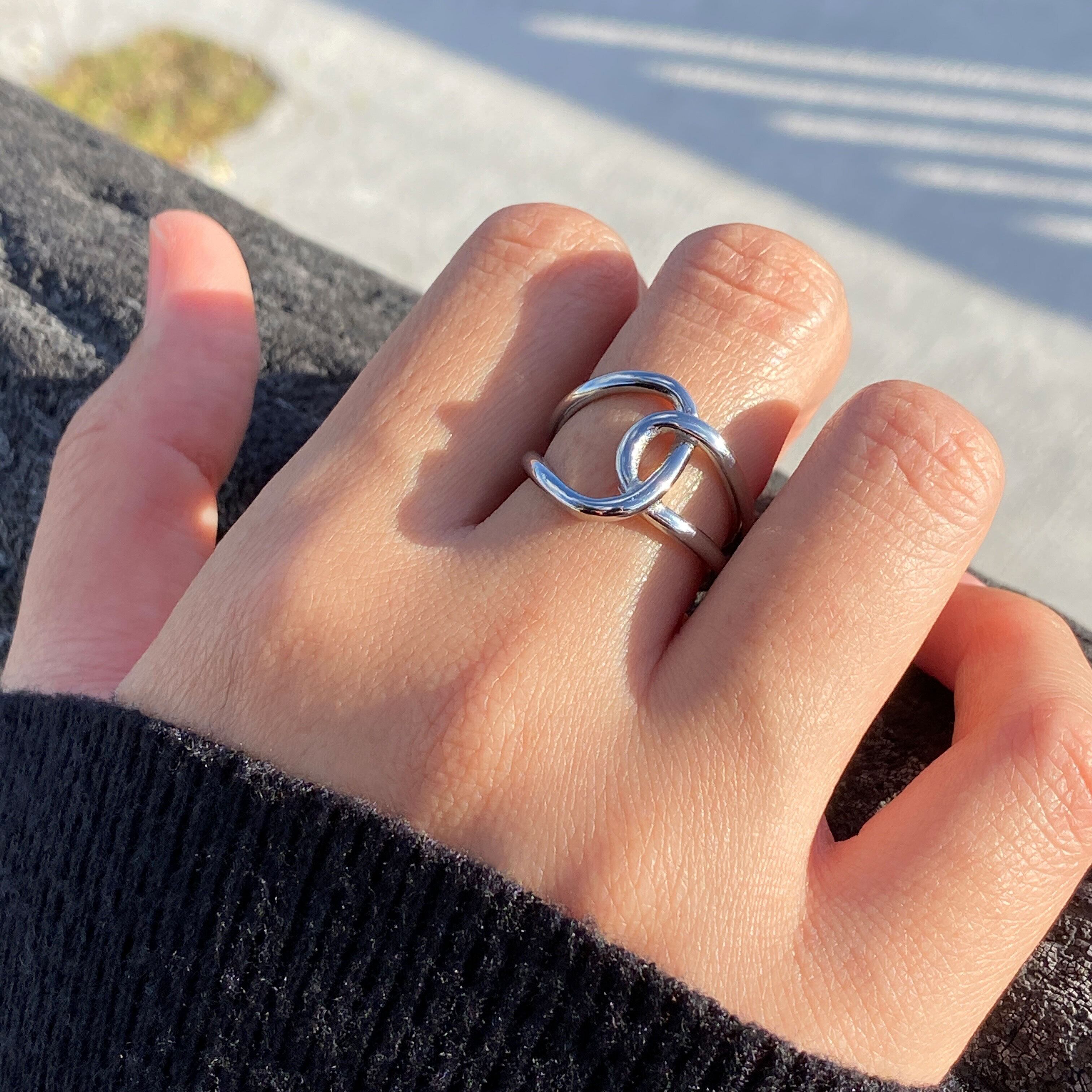 ドロップ型のメタルをゆるやかにクロスさせたリング。