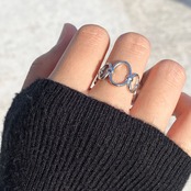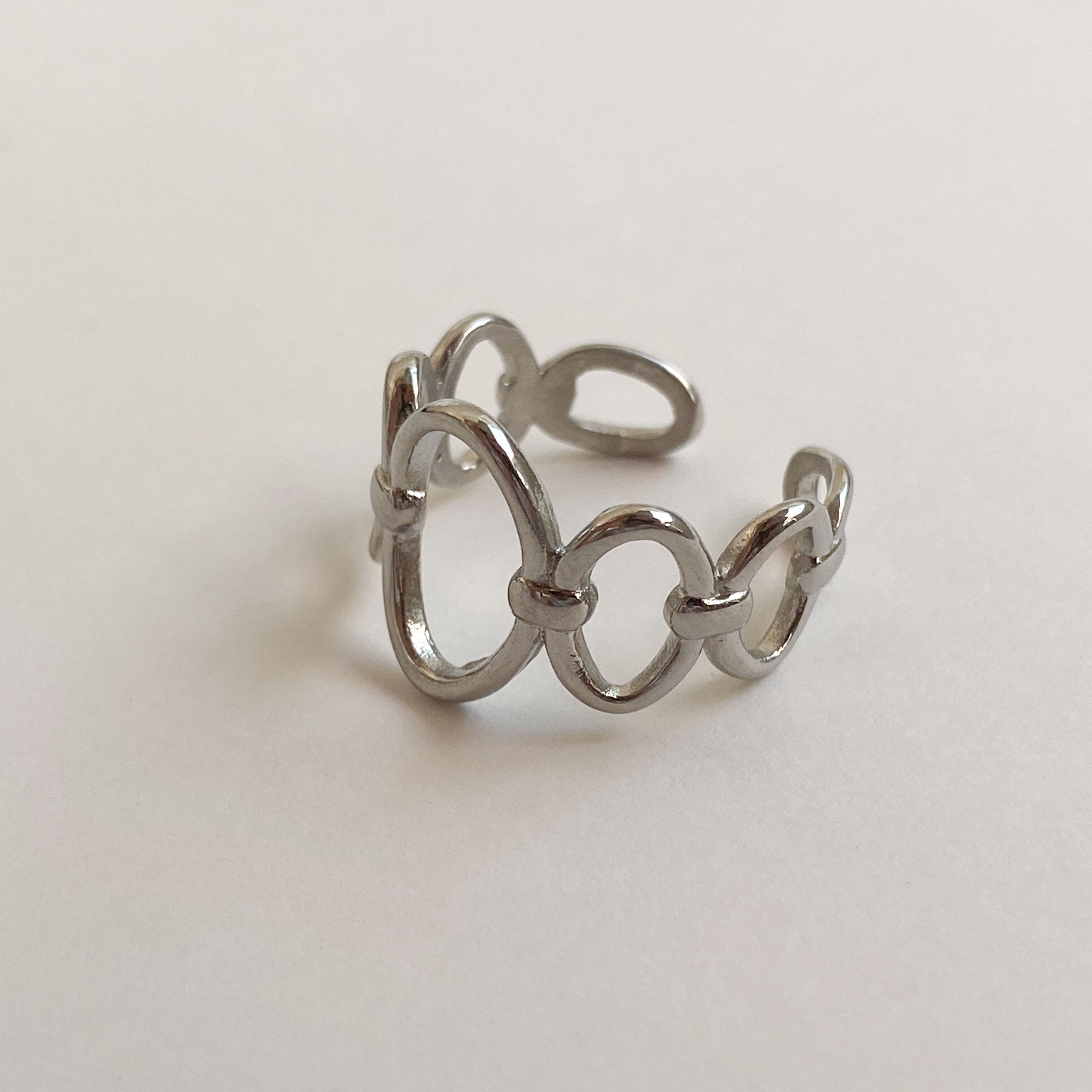 サイズ違いのサークルを繋ぎ合わせたトレンド感のあるリング。