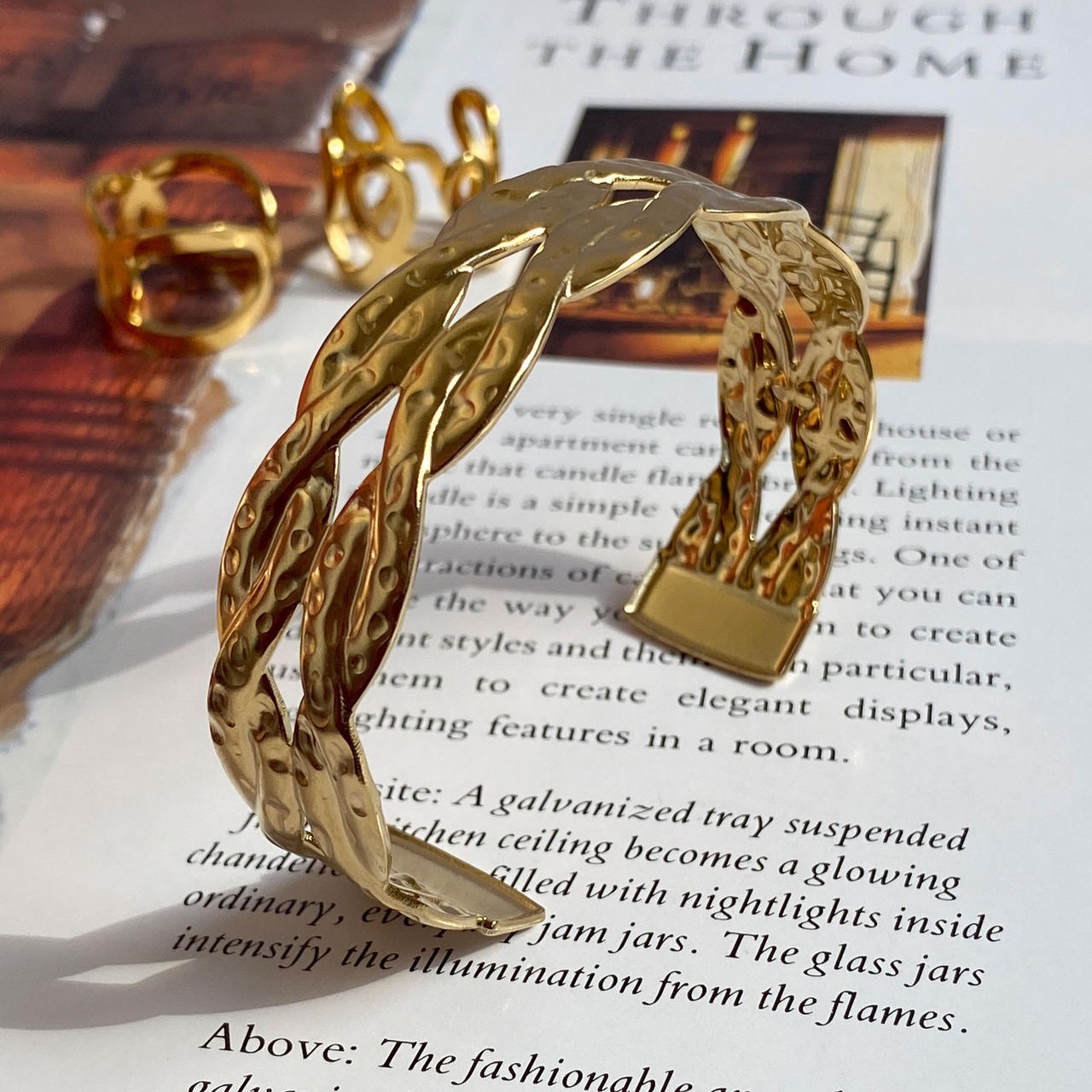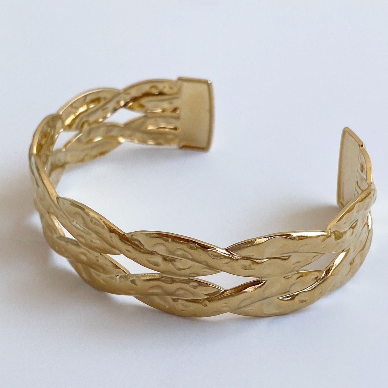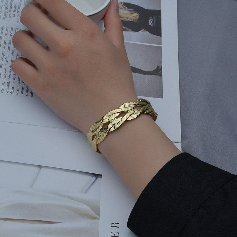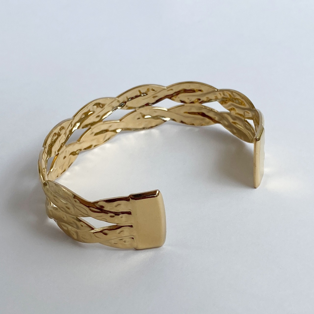エレガントな雰囲気が漂うゴールドカラーのツイストバングル。