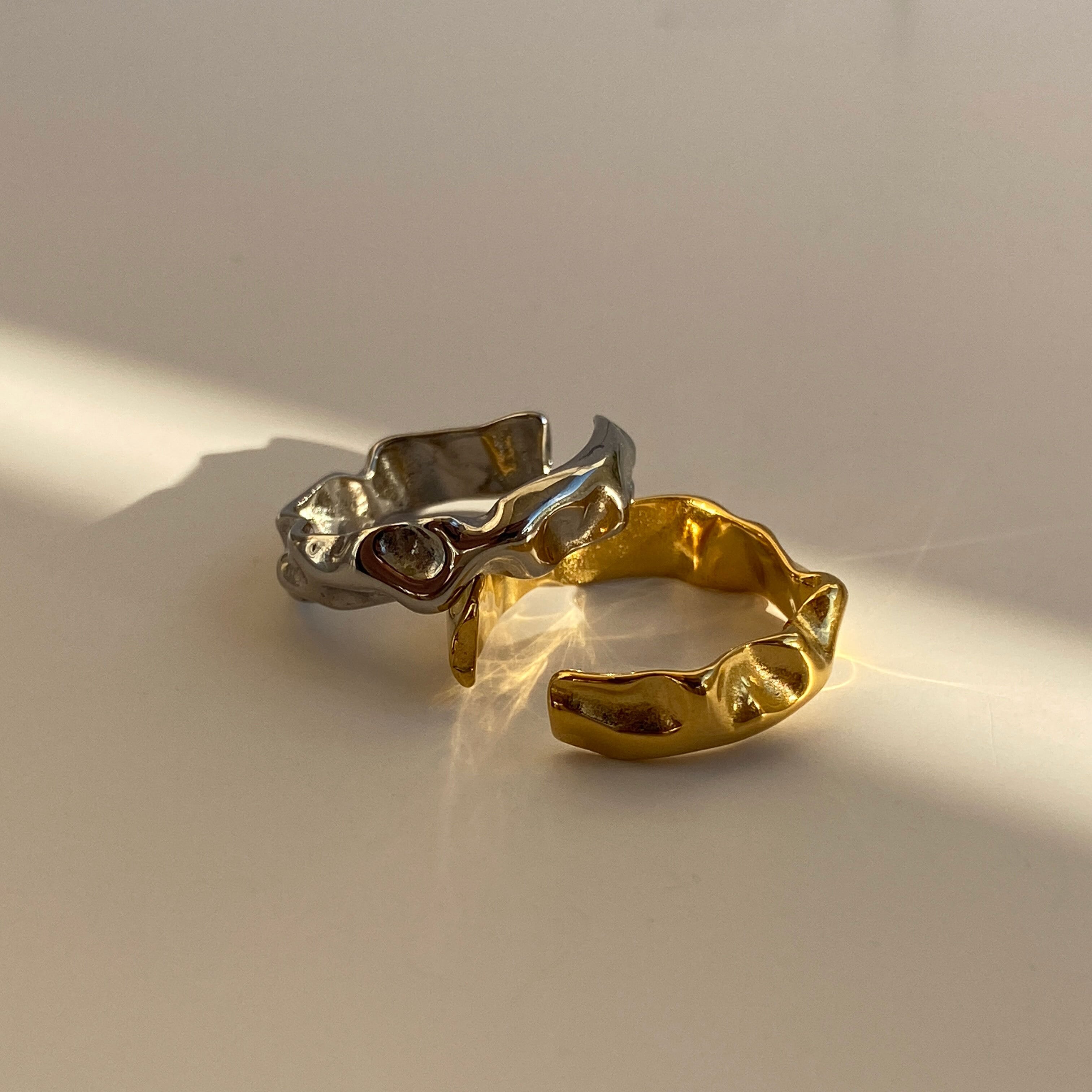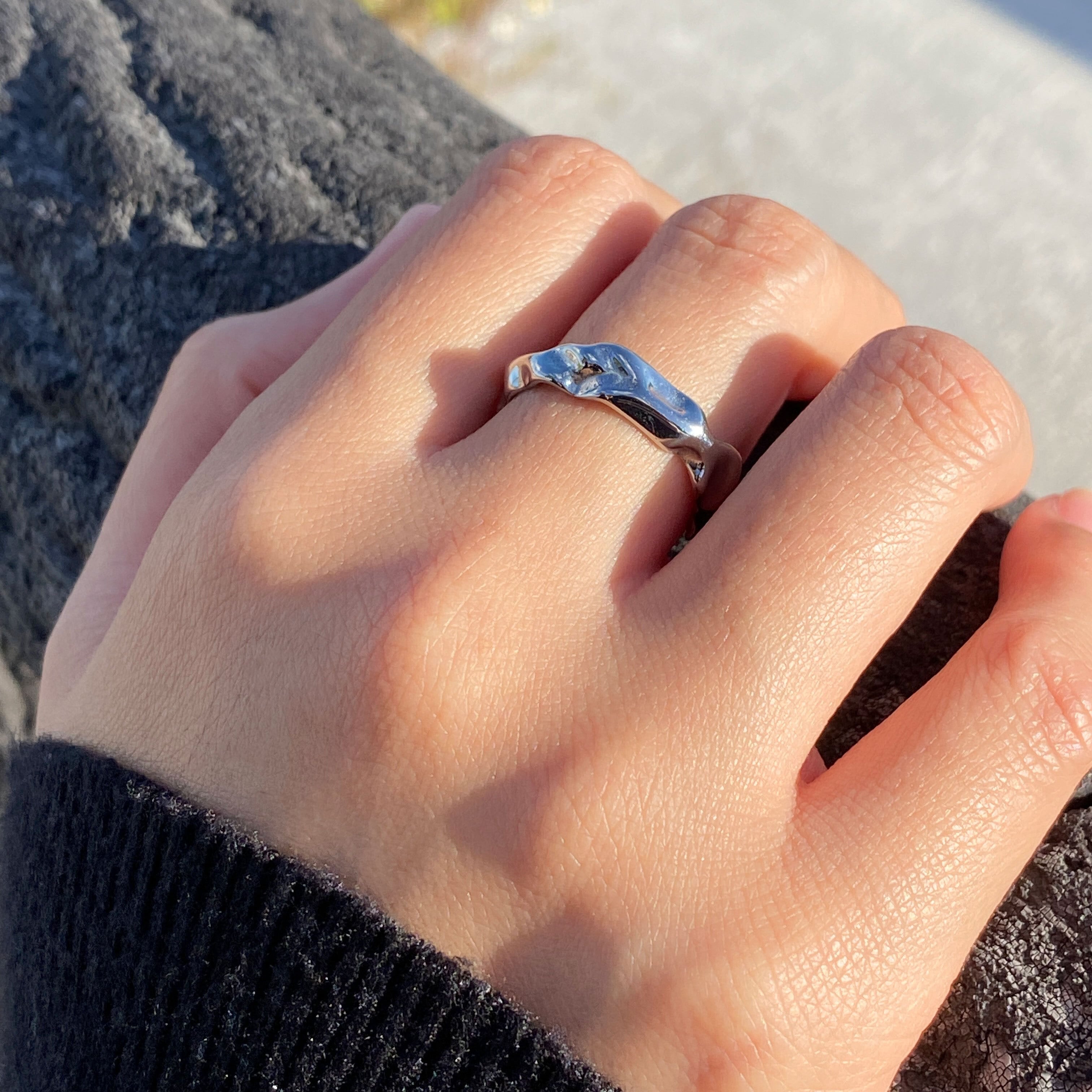 波打ち際を思わせるような歪みが大人エレガンスを叶えてくれる、メタリックなリング。